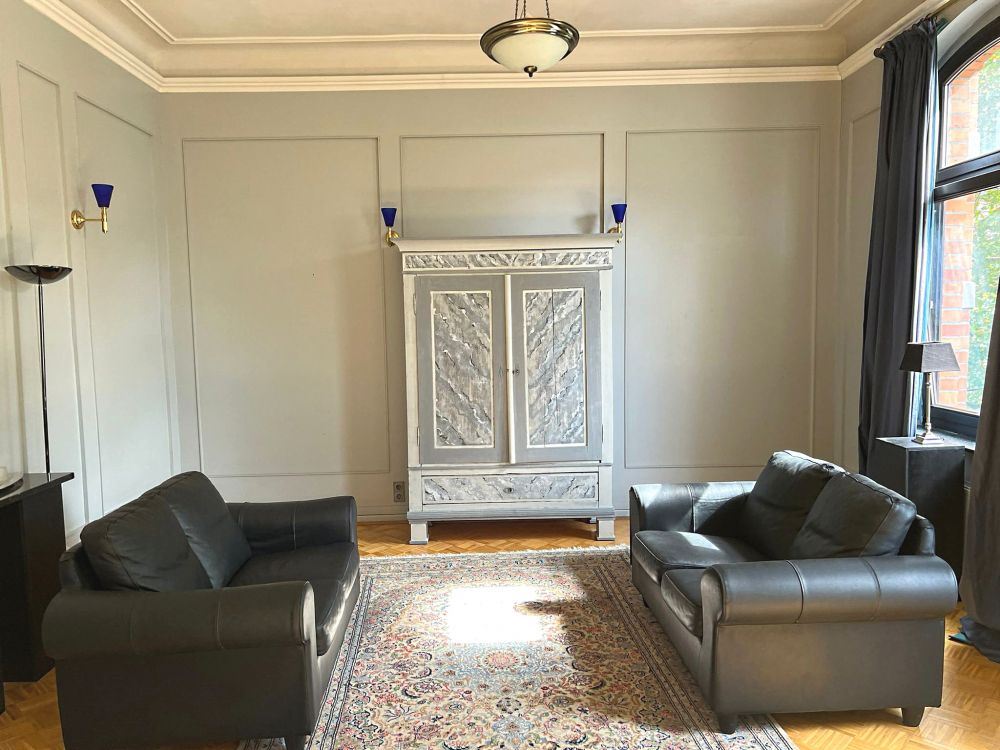 The very tastefully furnished apartment is located on the 2nd floor of a representative and lavishly renovated apartment building from the Wilhelminian period.