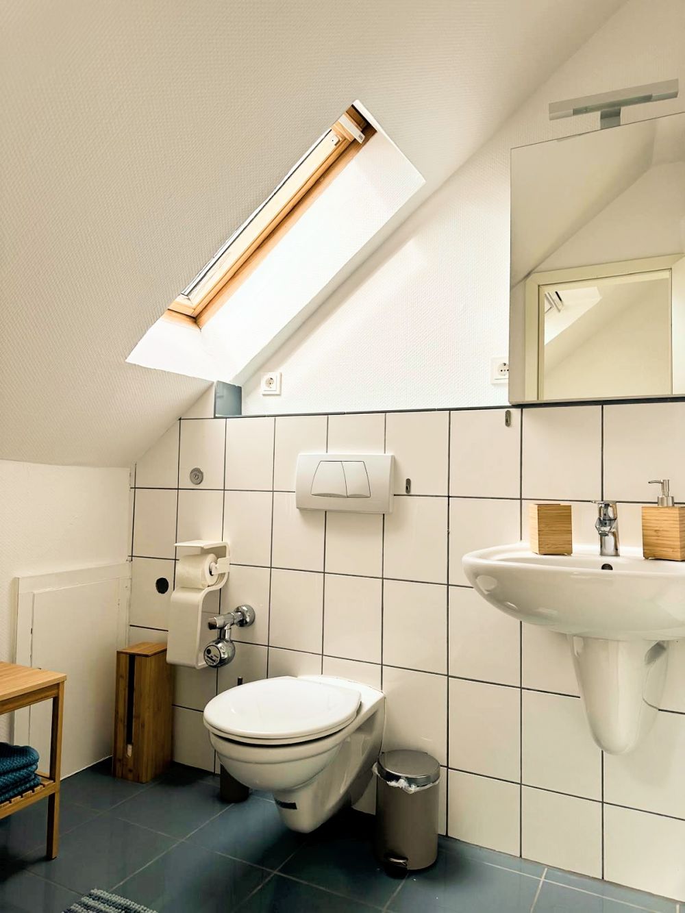 The attic apartment is located in a sought-after district of Neuss, around 10 kilometres from Düsseldorf. The district is characterised by its quiet and green surroundings, perfect for anyone looking for a retreat from the hustle and bustle of the city. Shops, restaurants and schools are all within easy walking distance. The neighbourhood is characterised by beautiful old buildings and well-kept gardens, giving the area a welcoming and family-friendly atmosphere.