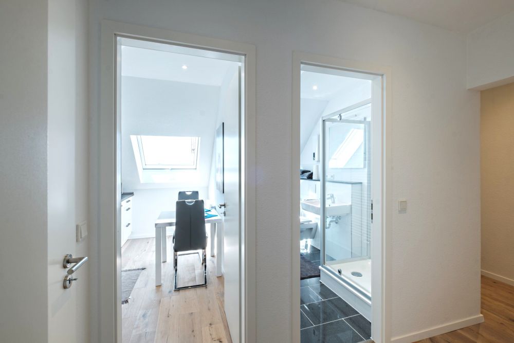 Bilk, with its many small bars, cafés, restaurants and shops, as well as its immediate proximity to Düsseldorf's Media Harbour, is one of the trendiest and most popular districts of Düsseldorf. The shopping mile Lorettostraße offers a variety of small (designer) shops and galleries in addition to shops for daily needs. The Rhine as a recreational area is only a few minutes' walk away. Düsseldorf's old town and the famous Königsallee are also within easy walking distance. The public transport connections are very good. Tram: 5 min Motorway: 5 min Main railway station: 12 min Airport: 16 min In addition, you can get directly to Düsseldorf's old town in a leisurely 20 minutes along the Rhine, with the beautiful skyline of the harbour and Oberkassel, without car traffic.