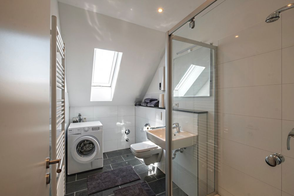 Die separate Küche ist mit hochwertigen Elektrogeräten ausgestattet. Im neuwertigen Badezimmer befindet sich die mit Kristallglas verglaste Dusche, sowie eine Waschmaschine. Das Badezimmer ist mit Granitstein ausgestattet