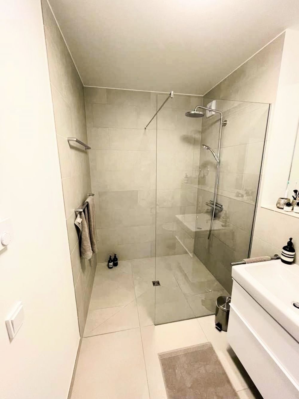 Badezimmer mit barrierefreier Walk-in-Dusche im 2. Obergeschoss