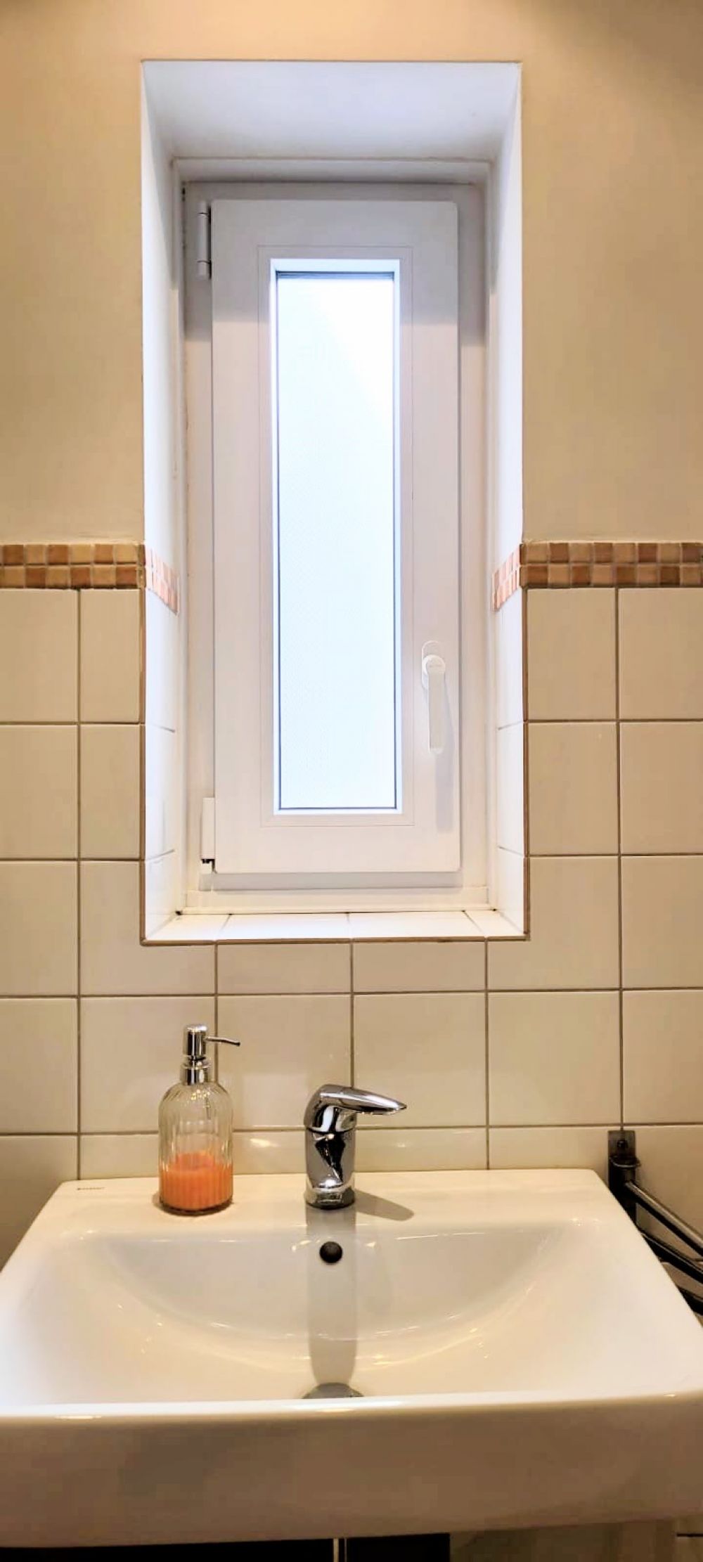 Das Tageslichtbad ist mit Dusche und Fenster ausgestattet.