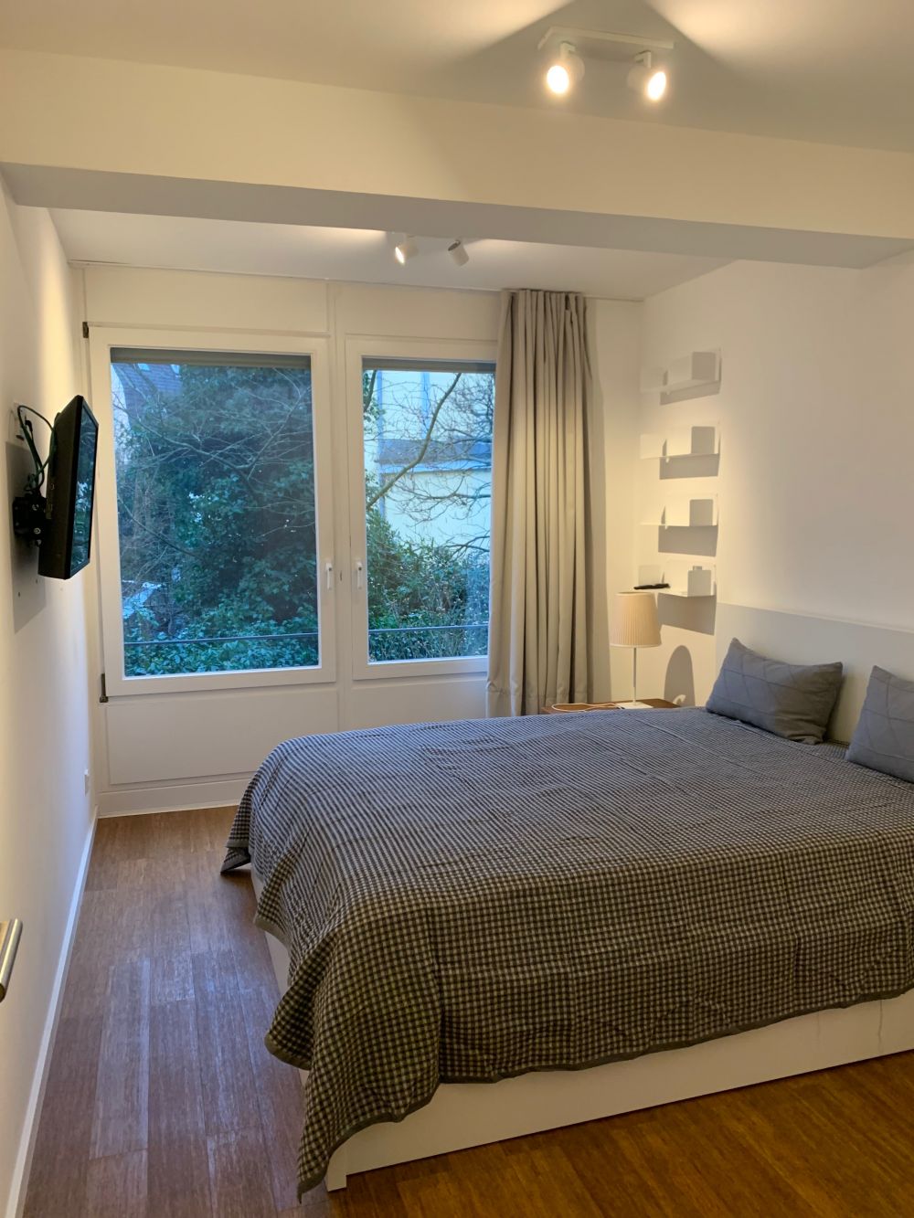 Die Böden bestehen aus hochwertiges Bambusparkett, weiße Fliesen im Bad. Fußbodenheizung.