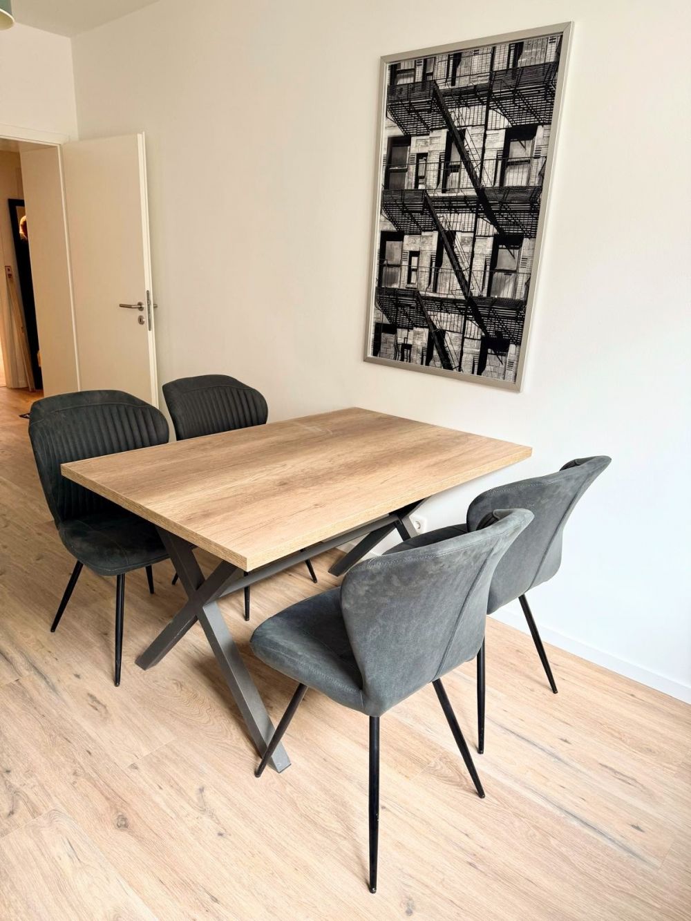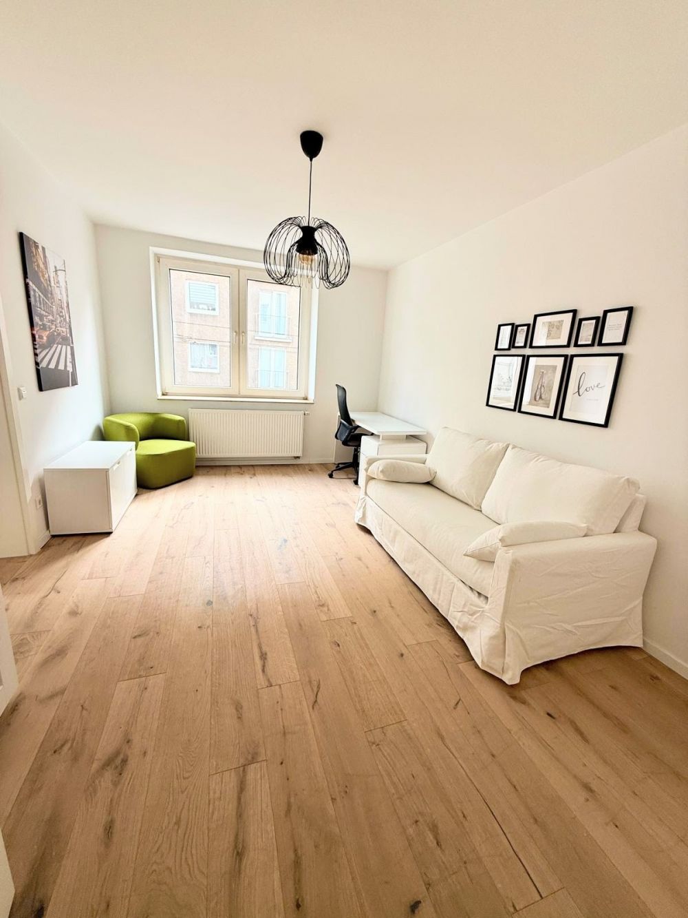 Pempelfort: Erstbezug nach Sanierung. Hochwertig und gleichzeitig gemütliche 3-Zimmer-Wohnung in schöner Seitenstraße. Wohnung mit Doppelverglasung und Wärme-Isolierung nach energetischer Sanierung befindet sich in einem gepflegten Mehrfamilienhaus. Das Wohnzimmer mit großem Sofa mit Récamière, Wohnzimmertisch und großem Flachbildschirm-TV grenzt an den Balkon, der zum Verweilen einlädt. Die moderne Küche ist mit sämtlichen elektrischen Geräten, u.a. Spülmaschine, Dunstabzugshaube, Backofen, etc., sowie einem Esstisch mit vier Stühlen ausgestattet. Das modern geflieste, neuwertige Badezimmer ist mit einer Dusche und modernen Armaturen ausgestattet. Im Schlafzimmer befindet sich ein King-Size-Bett, sowie ein großer Kleiderschrank mit viel Stauraum. Das Arbeitszimmer ist mit einem Schreibtisch mit Stuhl, und einer Sofa ausgestattet. Inklusive Internet. Rundfunkgebühren sind separat zu zahlen. Endreinigung: 300 €