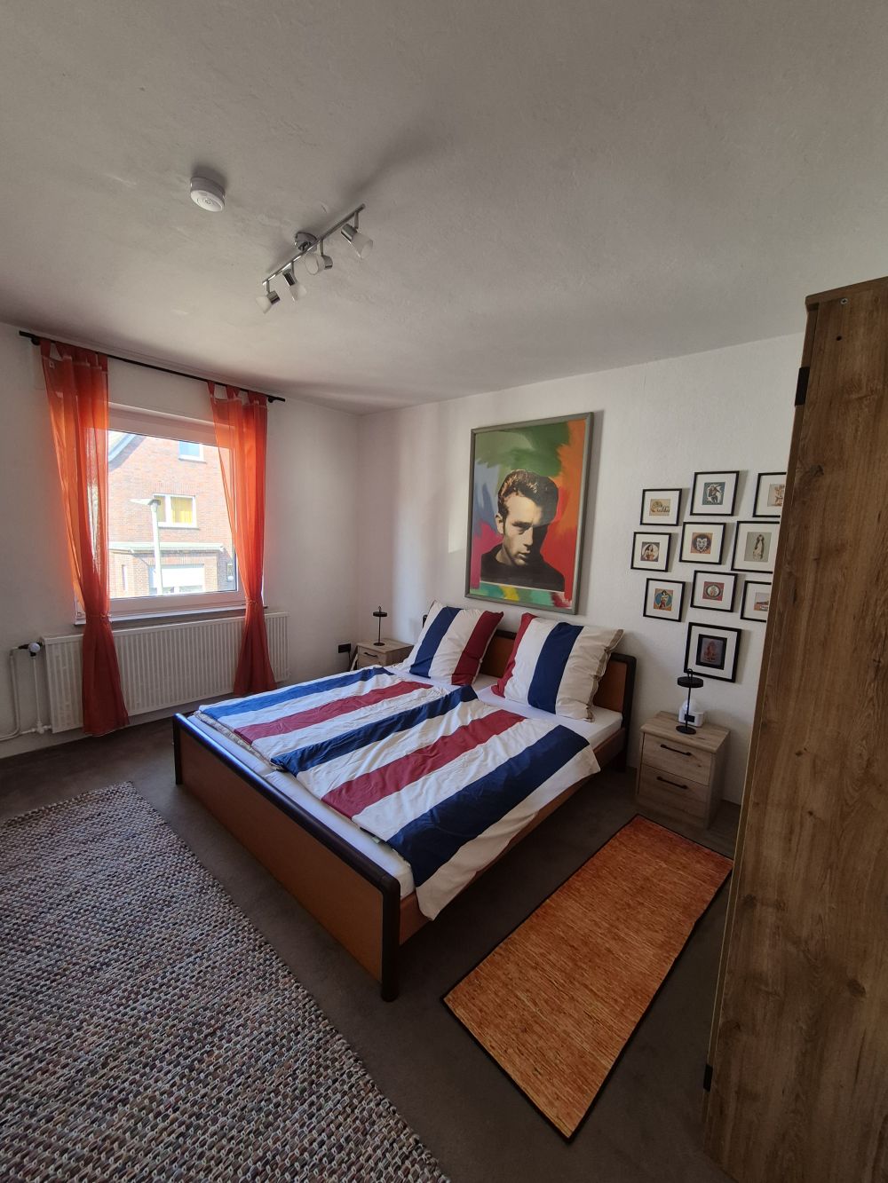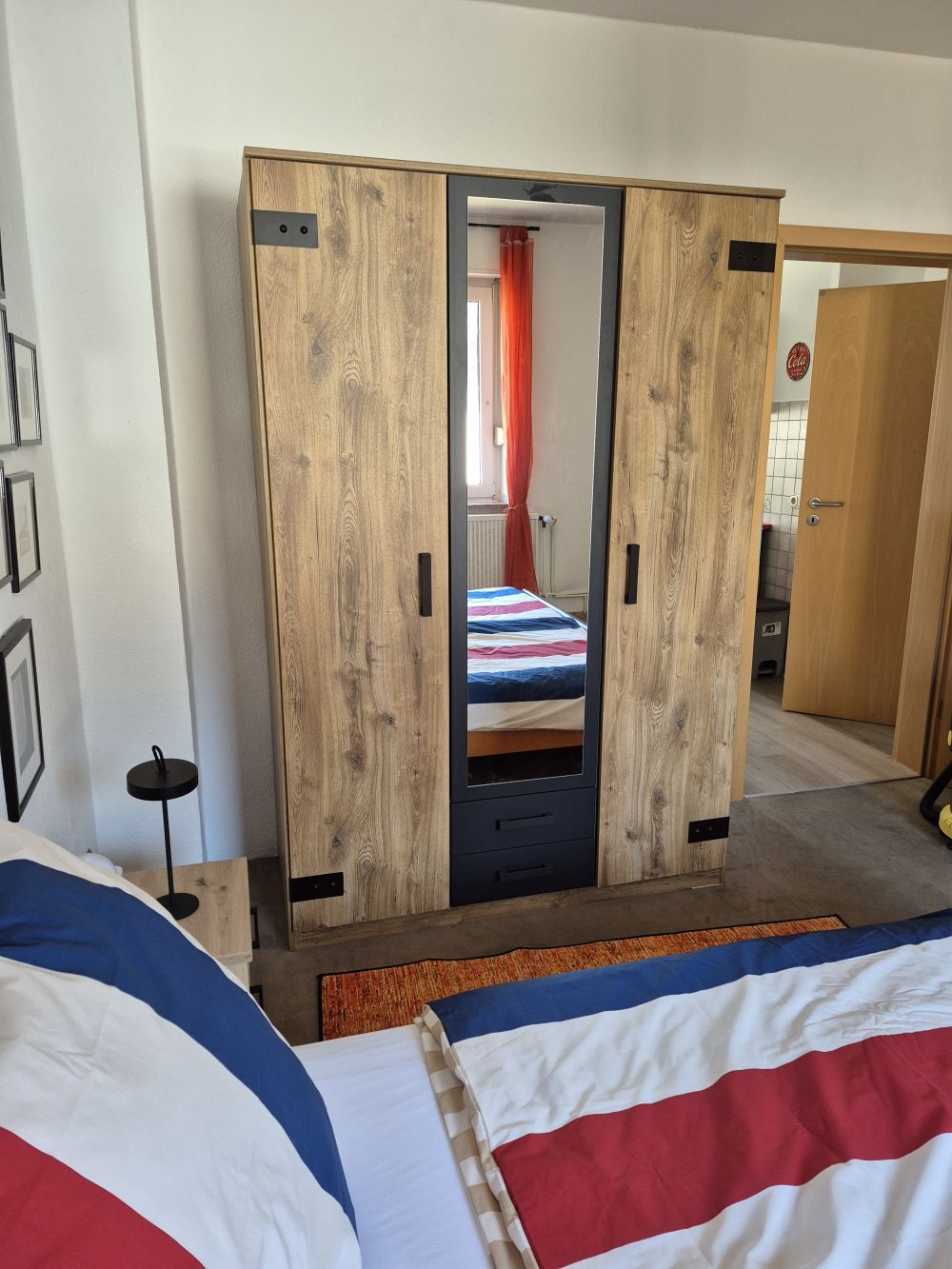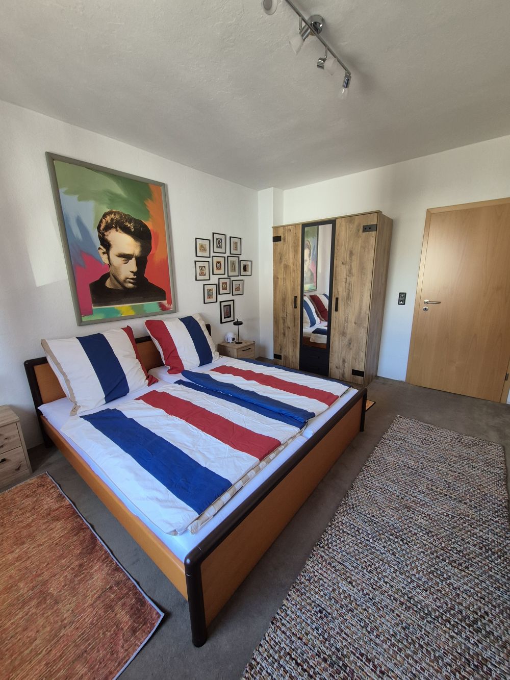 Im Schlafzimmer befindet sich ein großes Doppelbett sowie ein geräumiger Kleiderschrank, der ausreichend Stauraum bietet.