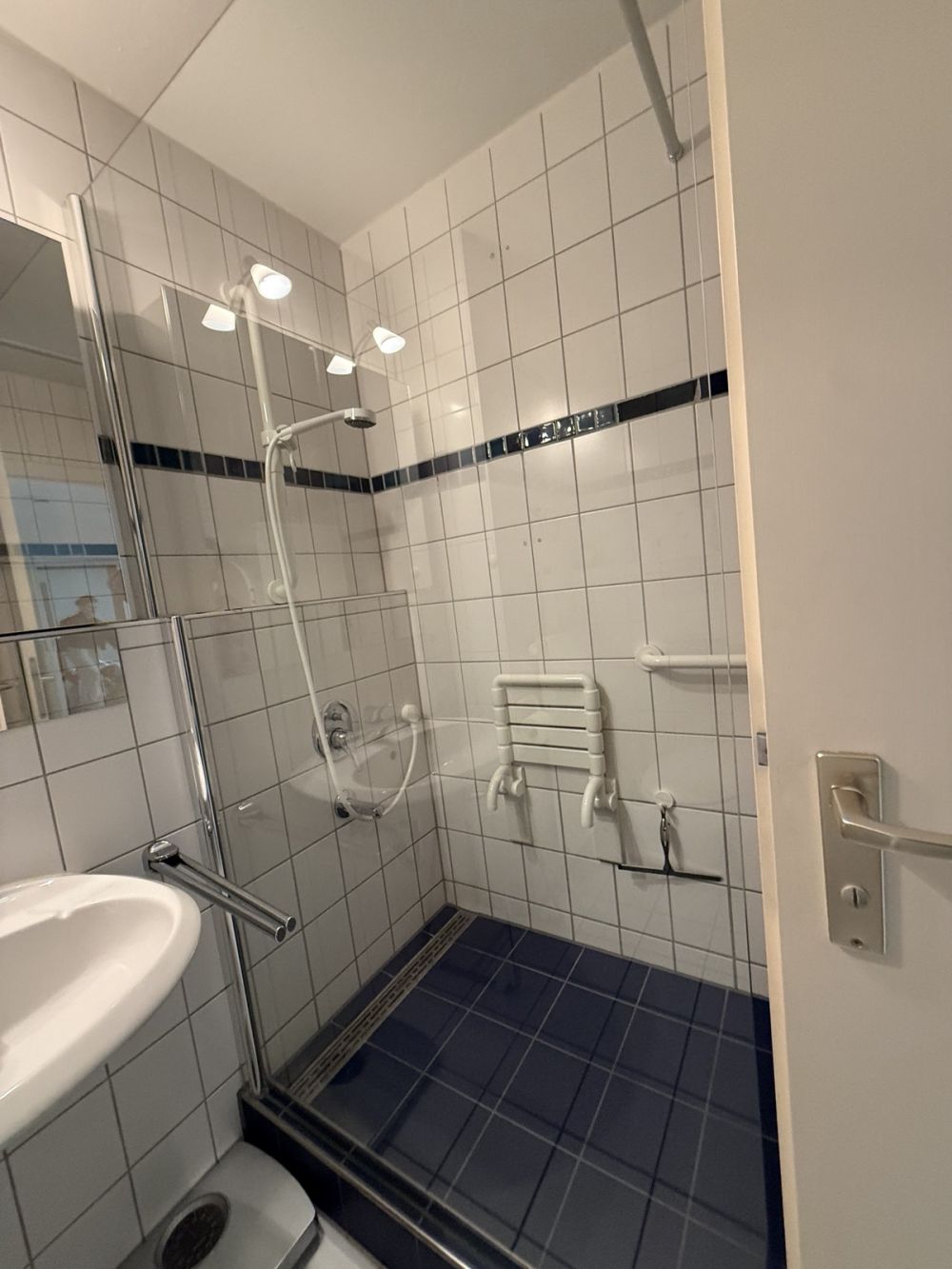 Das Badezimmer ist vollausgestattet mit Waschmaschine und Trockner.