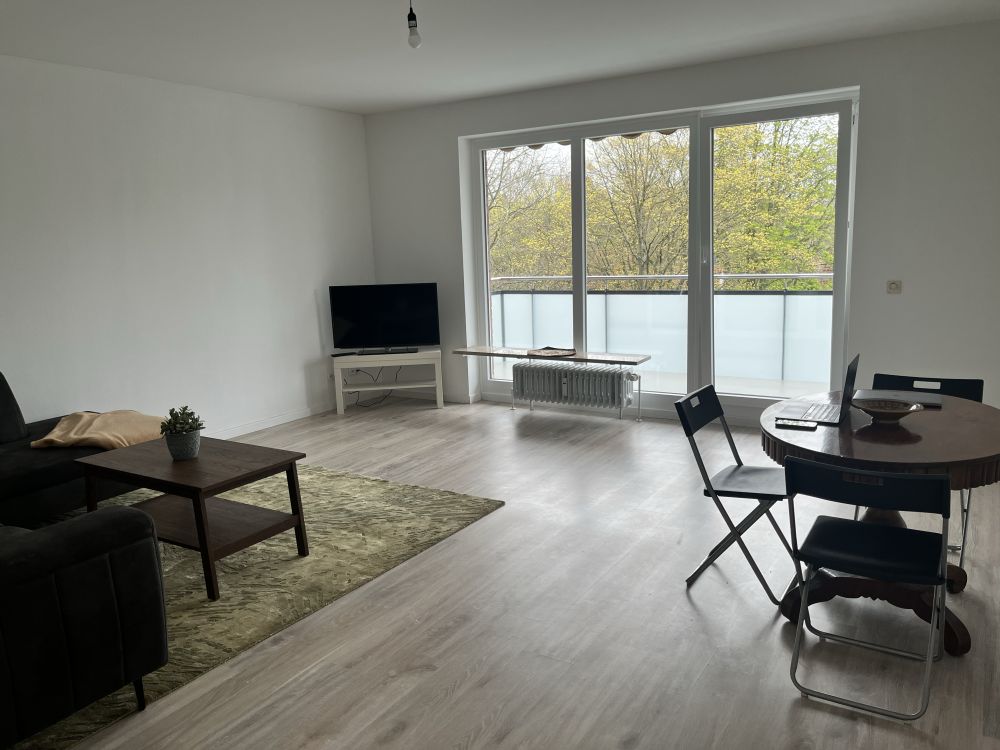 Möblierte 3 Zimmer Wohnung mit Balkon, Gäste WC, Badezimmer (insgesamt 2 Toiletten) und großer Küche inkl. Ausstattung.