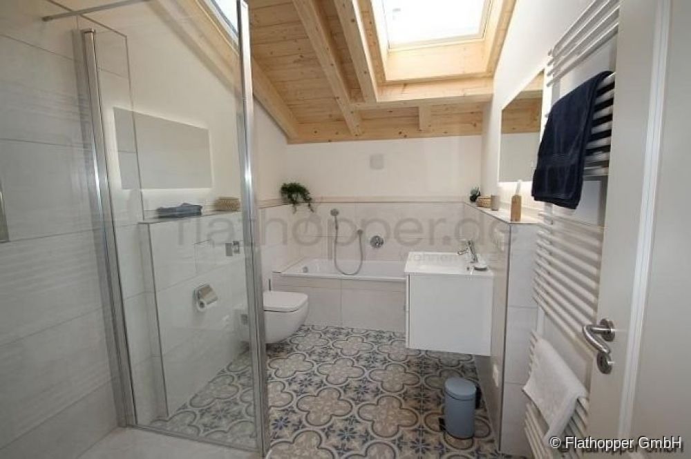 Eine Badewanne, sowie eine sehr große Dusche sind hier untergebracht.