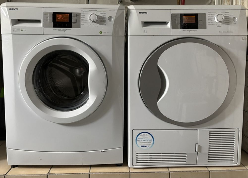 Eigene Wasch- und Trockner-Geräte stehen im Waschkeller des Hauses zur Verfügung.