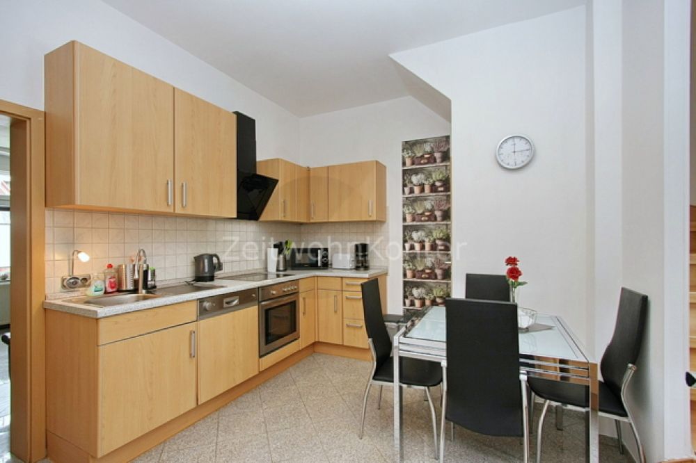 Große, vollausgestattete Küche mit Spülmaschine, Dunstabzug, Ceranfeld, Wasserkocher, Kaffemaschine et. und Esstisch für 4 Personen. Wohnzimmer mit gemütlicher, großer Couch und TV. Im ersten Stock befinden sich das Schlafzimmer mit zwei Einzelbetten und das Tageslichtbad mit Dusche und Wanne . Eine Waschmaschine steht im Keller des Hauses zur Verfügung. Komplettmiete inkl. Strom und WLAN. Reinigungsservice möglich, Bettwäsche und Handtücher werden gestellt. PKW-Stellplatz inklusive.